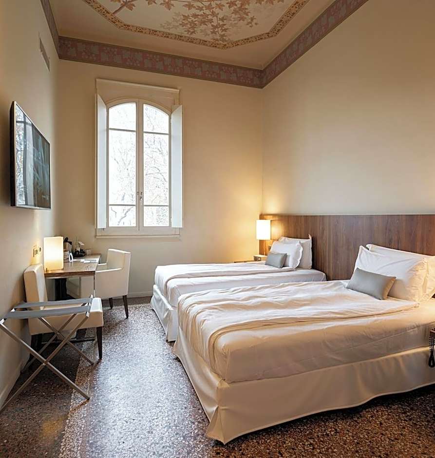 Larger room with attached bathroom with air conditioning, free wired internet and a TV. A safe and mini-bar are also included. Some rooms overlook the park, while others have a view of Via Indipendenza.