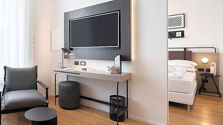 Larger room with attached bathroom with air conditioning, free wired internet and a TV. A safe and mini-bar are also included. Some rooms overlook the park, while others have a view of Via Indipendenza.